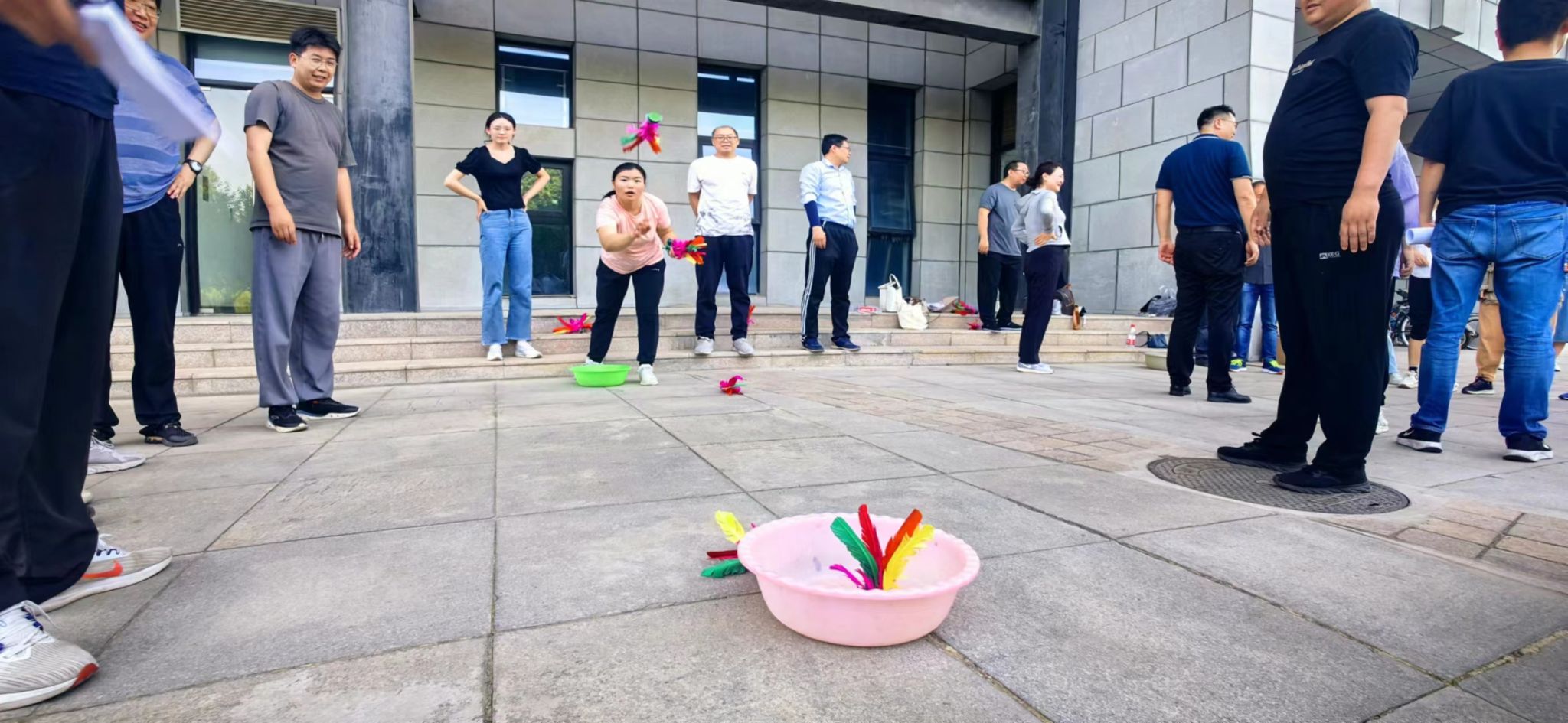 学院工会提前做好活动方案,公示给全体教职工。5月16日下午三点活动准时开始。各系室教职工积极参与,热情高涨,现场热闹非凡。在集体项目跳大绳比赛中,各队队员配合默契,绳子在空中划出优美的弧线,队员们灵活穿梭其中,展现了出色的团队协作能力。投毽子比赛更是精彩纷呈,两队队员你来我往,毽子在空中划出美丽的弧线,引得现场观众阵阵喝彩。