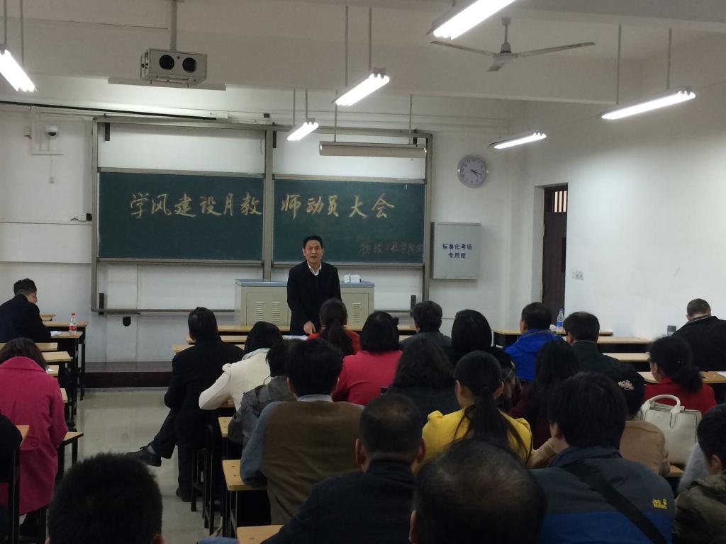会上,李新忠副院长宣读了《关于开展2016年学风建设月活动的通知》,从活动宗旨、活动形式、实施步骤、活动要求等方面进行安排、部署;随后,由各系系主任发言,说明近期各系在教学、科研工作的进展及存在的问题。