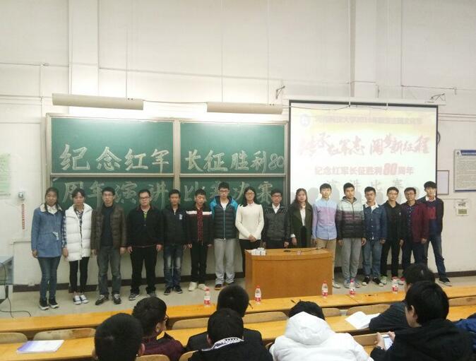 beat3652016年新生主题文化节之“纪念红军长征胜利80周年”演讲比赛决赛于2016年11月9日晚在开元校区公教4- 101举行,学院团委副书记朱勇老师,学生会主席马志勇、副主席牛满彤、团委干事程青亚、学习部副部长赵萌萌出席并担任评委,2016级全体同学参加。演讲比赛由徐晓、吴昊主持。