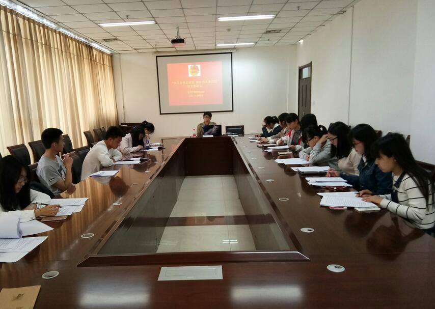 会议伊始,朱老师向与会人员宣读校团委《关于开展“学习总书记讲话 做合格共青团员”教育实践的通知》(以下简称“通知”),让其了解“一学一做”教育实践的重要意义;接着,朱老师对通知的内容进行解读,主要从活动时间、参加对象、目标任务、活动内容、有关要求进行动员、安排和部署,同时,对在场团干部就“一学一做”相关疑问和注意事项进行解答和交流。最后,朱老师要求各位团干认真学习通知精神,准确全面传达给各团支部的团员青年,高度重视此项工作,按时间截点和工作安排扎实开展和落实“一学一做”教育实践。