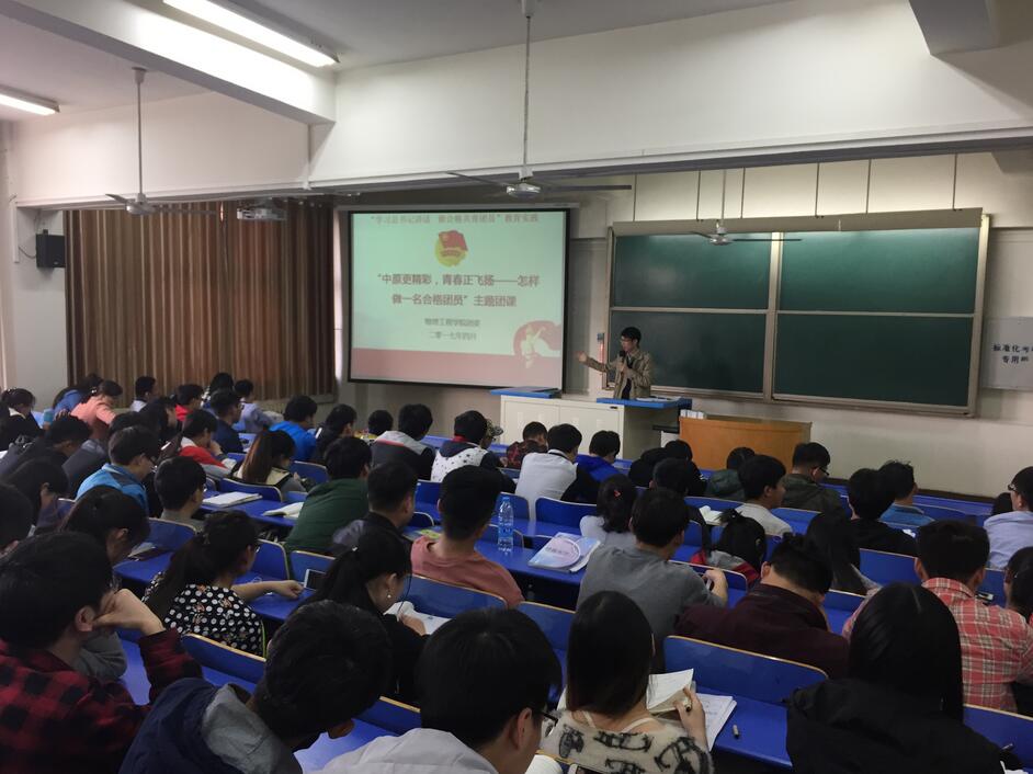 为积极响应上级关于开展“学习总书记讲话 做合格共青团员”教育实践的通知精神,beat365于4月14日下午于公教1-406举办“中原更精彩,青春正飞扬——怎样做一名合格团员”主题团课。beat3652015级全体团员参加学习教育,团课由beat365团委副书记朱勇老师讲授。