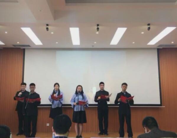 我院团委高度重视本次比赛,经过院级初赛,推选两项作品参加校级比赛,在集体组比赛中,徐晓、董星星等六人朗诵的作品《中华少年》慷慨激昂,振奋人心,抒发了青年大学生热爱祖国的强烈情感,赢得了评委和观众的热烈掌声,最终以8.57的高分斩获二等奖。个人组中,刘天宇同学的《我骄傲,我是中国人》,气势磅礴,感情激越,震撼全场,展现出作为中华儿女的自豪感和自信,最终以8.37的成绩荣获优秀奖。