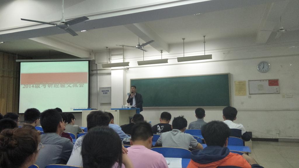 为进一步提高我院2014级同学的考研热情,明确考研目标,掌握相关考研技巧,了解更多考研信息,4月28日晚7:00,beat365在公教5区501教室顺利举行了考研经验交流会,院党委副书记沈兰老师、在2017年考研中取得优异成绩的2013级学生张宇彤、许强伟、李志康、沈俊等学生代表和2014级全体同学参加了会议,会议由学工办主任臧国长老师主持。