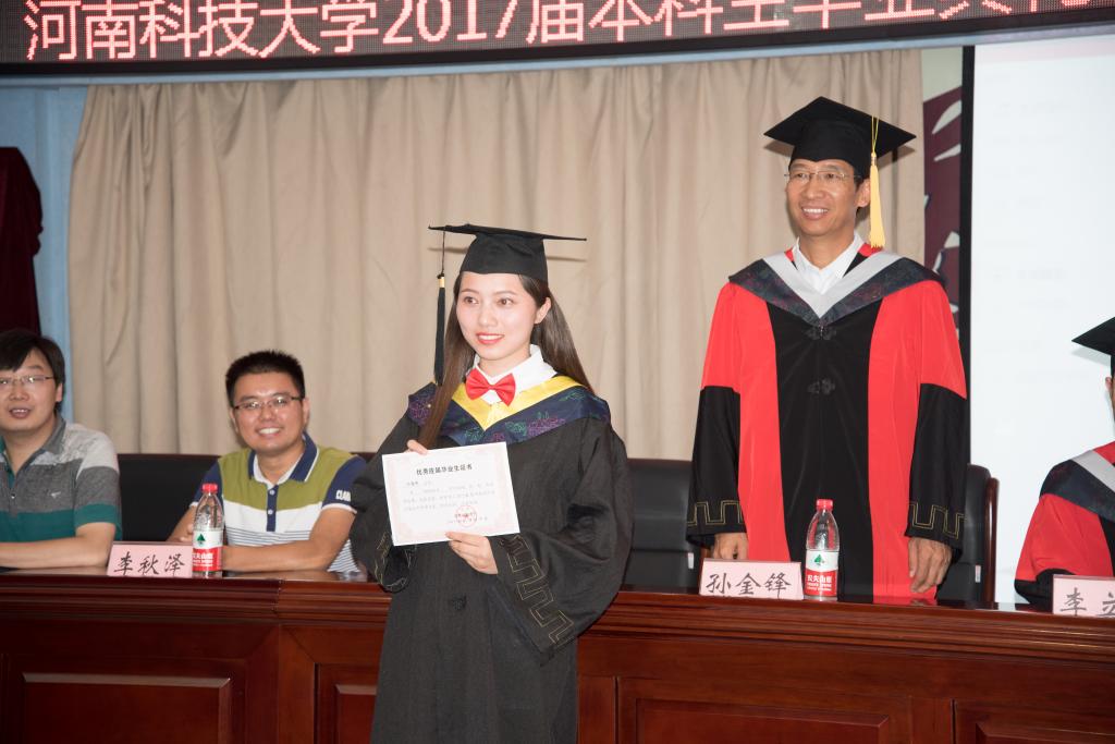 校党委书记孙金锋教授为河南省优秀本科毕业生江海燕、杨明祥、沈艳华、宋航琪、张宇彤、沈俊6位同学颁奖。