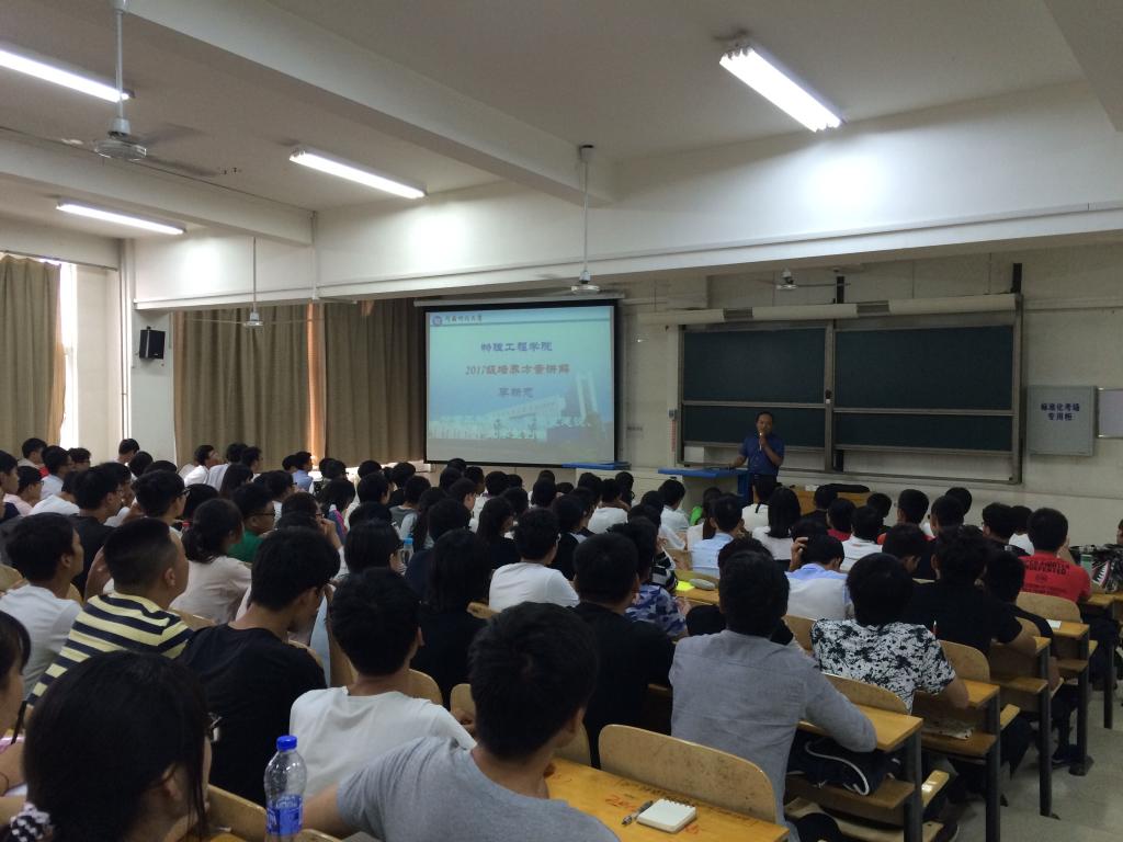 首先,李新忠老师就《2017级本科生培养方案》进行讲解。他从我院的学科专业、师资队伍、教学科研情况、学籍管理规定、课程结构等方面为新生细致讲解新版培养方案的主要内容。使新生了解学校的相关规定和我院的基本情况。