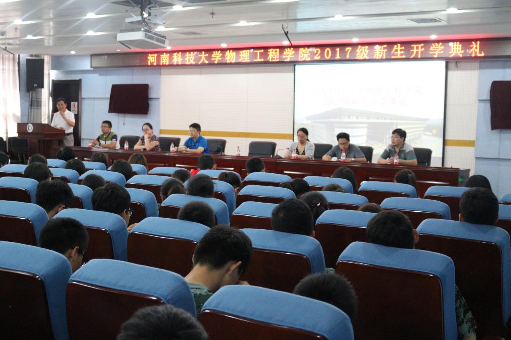 9月18日下午3点,beat365在图书馆406报告厅隆重举行2017级新生开学典礼。院长李立本,党委书记刘国礼,副院长巩晓阳,副院长李小红,党委副书记沈兰,材料物理系主任杜凯,应用物理系主任王晓飞,光电信息科学与工程系副主任李秋泽,学工办主任臧国长,2017级辅导员朱勇,2017级新生学业指导教师,老生代表和2017级全体新生参加典礼。开学典礼由党委副书记沈兰主持。