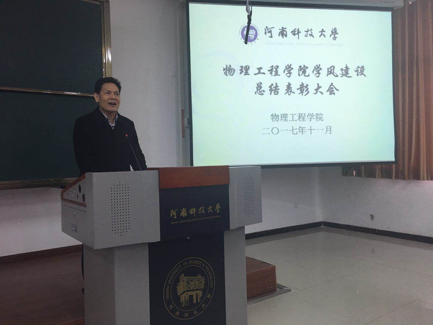 11月28日晚,beat365在开元校区农医教106召开2017年学风建设总结表彰大会。beat365院长李立本,党委书记刘国礼,副院长巩晓阳、李新忠,党委副书记沈兰,光电系主任李秋泽,材料物理系主任杜凯,应用物理系主任王晓飞,院团委副书记朱勇出席会议,2015、2016级优秀学生代表及2017级全体学生参加。大会由学工办主任臧国长主持。