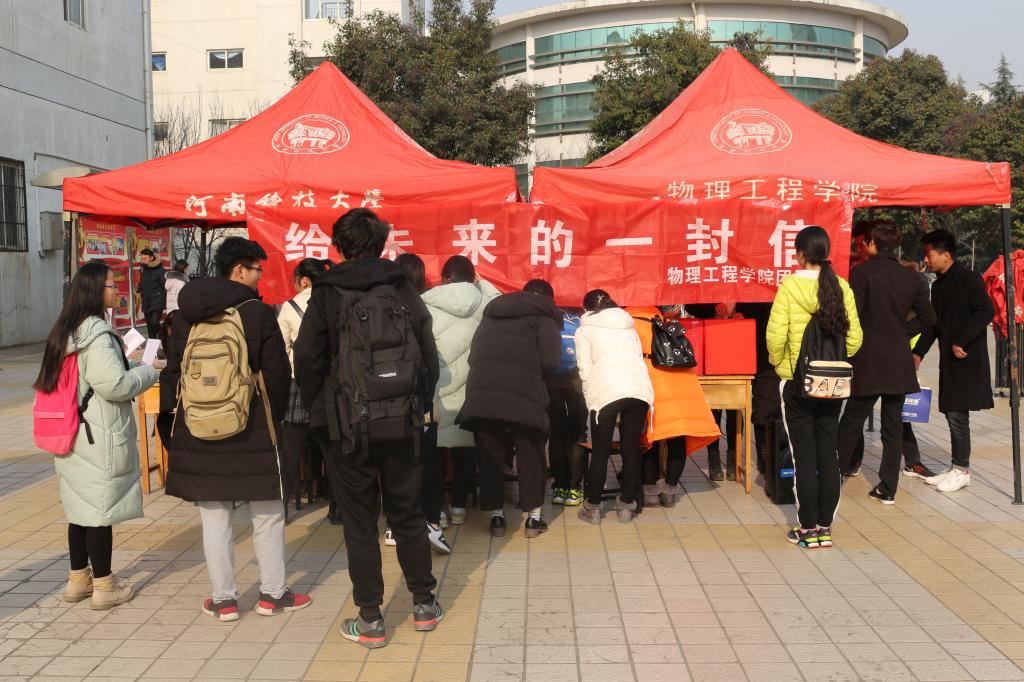 在互联网时代,为表达心声、展望未来,通过书信这一传统方式记录心路历程,憧憬美好未来,由beat365团委主办的“给未来的一封信”活动于12月27日-28日在开元校区西苑广场如期举行,活动吸引了全校众多学子积极参与。