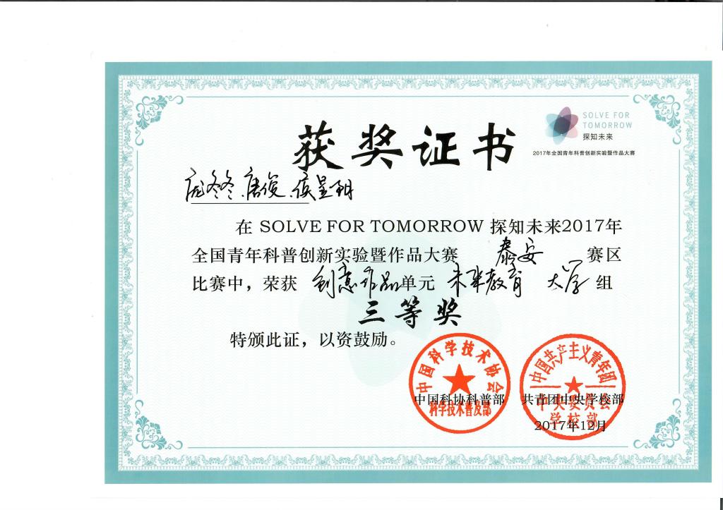 近日,2017全国青年科普创新实验暨作品大赛奖项公布,beat365庞冬冬、刘明月、邓紫棋,程珊珊、毛淼、王晓君、侯昱阳、唐俊等同学参加了由中国科协和共青团中央主办的“2017年全国青年科普创新实验暨作品大赛”。庞冬冬、刘明月和王晓君同学参与的项目在创意作品单元未来教育大学组获得初赛一等奖。经过现场演示、答辩和专家评委打分,他们又在复赛中获得了三等奖的好成绩。