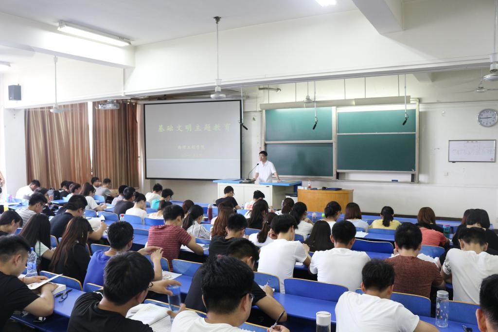 活动伊始,朱老师以校内外学生中典型的不文明现象引出主题,针对不文明现象,分析了产生原因、不良影响。他指出,文明素养是大学生最基本的素质之一,基础文明建设是学校精神文明建设的重要组成部分;提醒并勉励在场学生要自觉遵守学校的各项规章制度,切实以《河南科技大学大学生行为指南》为指引,从小事做起,知行合一,从言谈举止、课堂纪律、诚信做人、安全卫生、交通出行、校园礼仪等方面规范自己的言行,做有品质、有修养的合格大学生。