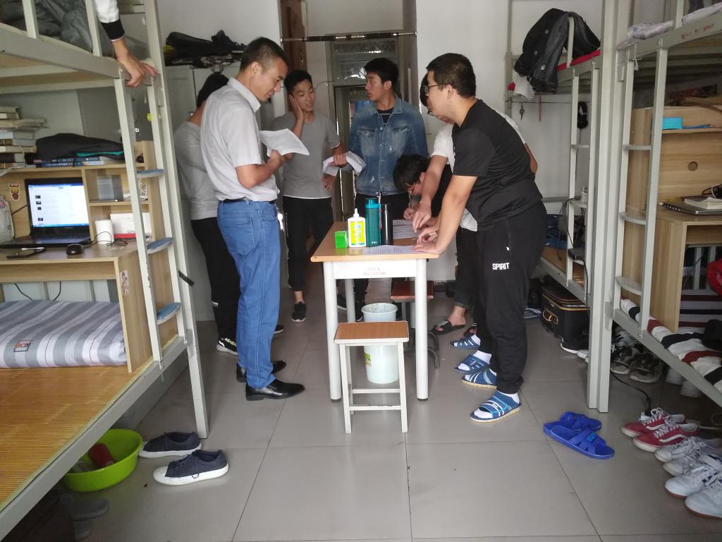 9月12日,beat365对全院学生宿舍进行了安全卫生大检查。院学工办主任臧国长和团委副书记朱勇一同深入学生宿舍进行走访检查。