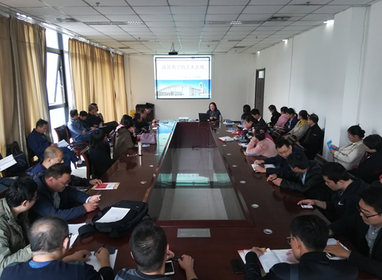 为切实提高我院教师课堂教学水平,按照学校本科教学工作审核评估学院评建“整改抽查”工作方案,我院于2018年10月18日下午2:30在图书馆111会议室举办了学院全体教师的教学培训,邀请学院巩晓阳副院长为全院教师作题为《浅谈教学的艺术表现》专题讲座,培训由学院书记刘国礼主持。