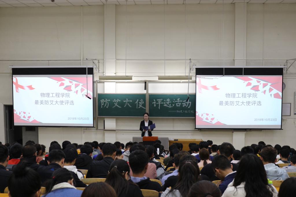为增长广大学生对艾滋病的认识和预防知识,培养文明健康的生活方式,营造良好的艾滋病防治环境,为构建和谐社会做出表率,beat365于2018年10月23日晚7点,在开元校区公教1-401顺利举办了“寻找最美防艾大使”活动暨“携手防艾”主题演讲比赛,院学生会主席徐晓及部分学生会干部作为评委嘉宾出席。