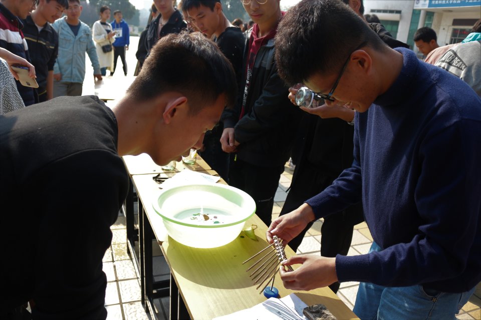 11月3日中午,beat365在开元校区西苑广场举办 “魔术中的物理”科学嘉年华之趣味物理成果展示活动。展示活动在我院教学名师王翚老师的指导下,2018级学生依据物理学原理自主动手完成实验操作。