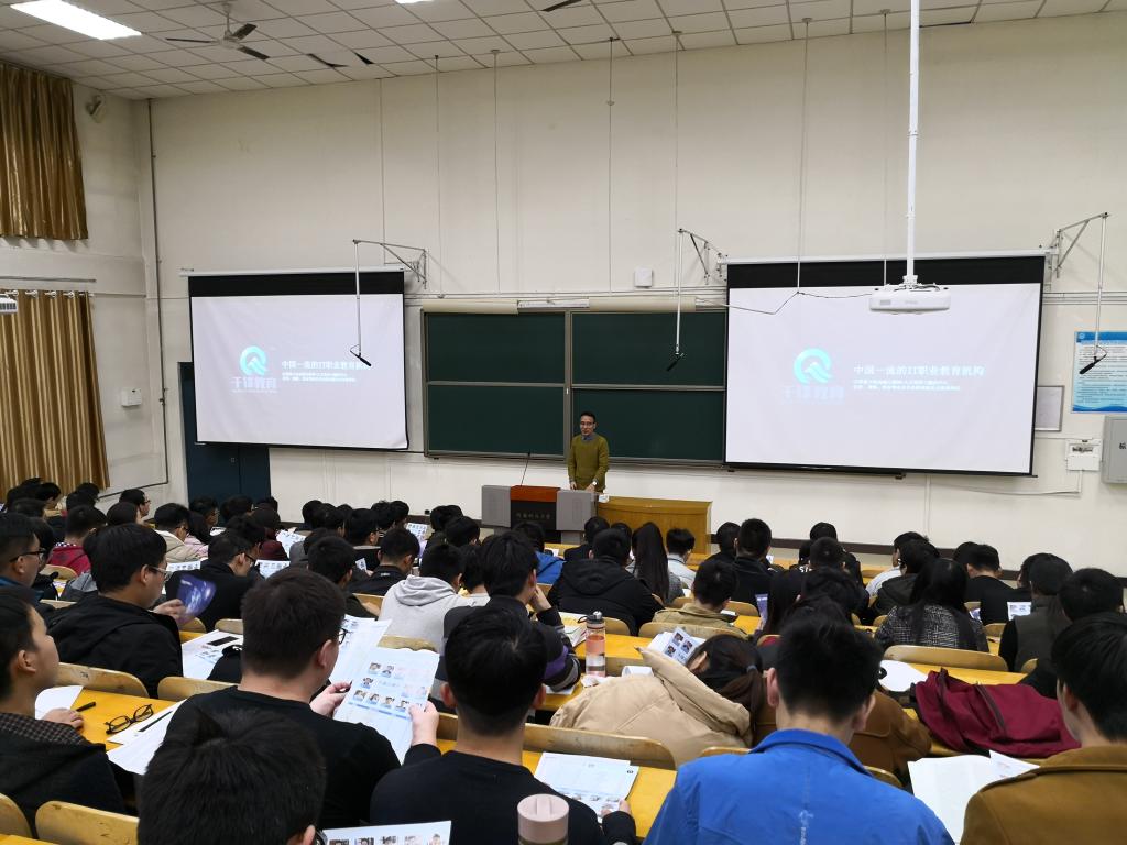 11月20日下午,beat365在公教4区302教室举办千锋教育专场招聘会。千锋教育公司代表及全体2019届毕业生参加了招聘会,招聘会由学院党委副书记沈兰老师主持。
