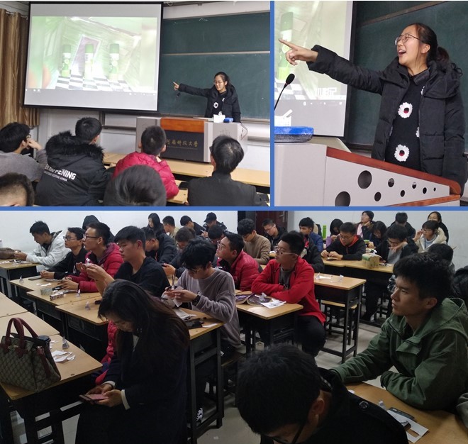 应物专业的李静宇同学给大家讲解了她所做“魔幻小屋”实验,并分享了其中有趣的故事。然后,王翚老师通过视频的形式给大家普及了许多与视觉误差有关的知识。