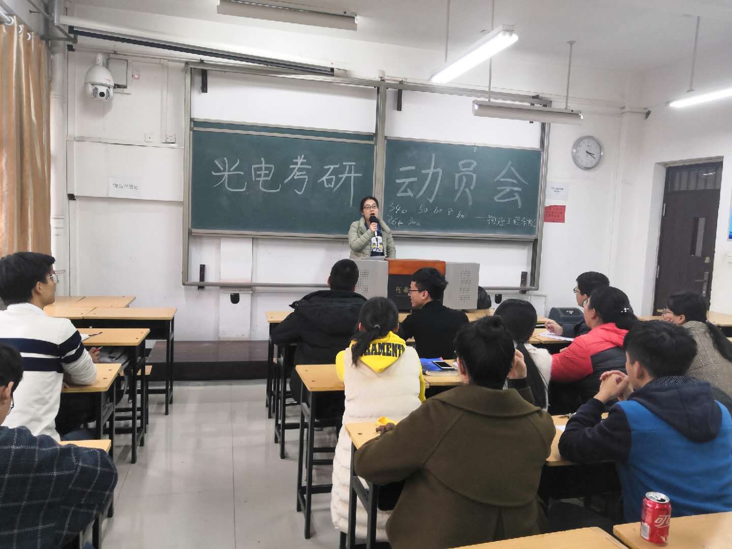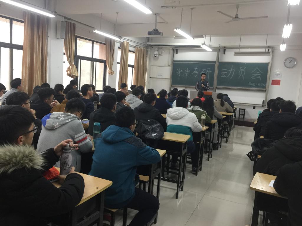 12月21日下午,beat365光电信息科学与工程专业在文科2号楼101教室召开光电16级考研动员指导会。会议由光电系副主任、专业学业导师李秋泽主持,年级学业导师唐苗苗、2016级光电专业全体学生参加了会议。