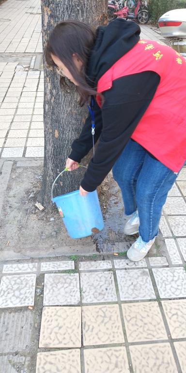 为了做好此次活动,活动负责人提前对校园内的绿植进行了考察,最后确定本次“守护绿色”志愿服务活动对象为嘉园宿舍区附近的植物。志愿者每两人一组,在保障安全的情况下到水源地打水,他们通过接力将水抬至大树旁,每名志愿者都怀着饱满的热情为大树浇水,渴望着它们在春天焕发出更盎然的生机。志愿者们通过一个小时的辛勤努力,让那些大树都接受到水的滋润,在今年的植树节里,感受到我们对它们的关怀。望着那一颗颗仿佛更挺拔的大树,志愿者们纷纷露出欣慰的笑容。