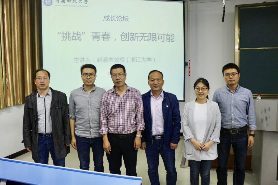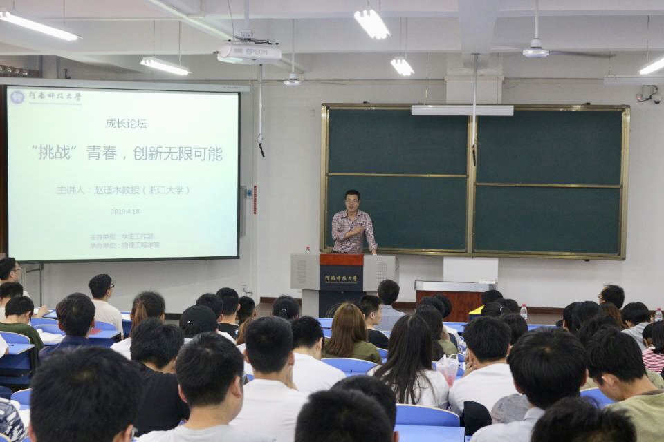 4月18日下午,由我校学生工作部主办、beat365承办的成长论坛——“挑战”青春,创新无限可能在农医教学楼105开讲。本次论坛由浙江大学教授、博士生导师赵道木主讲,beat365副院长李新忠教授主持,学院部分老师和200多名学生参加了本次讲座。