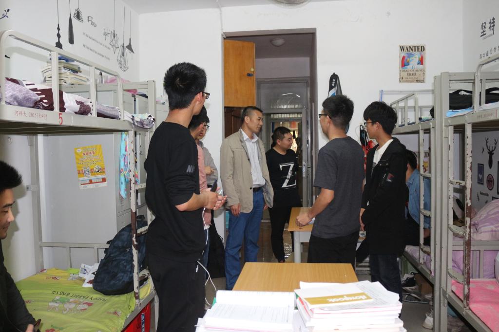 春季是传染病高发季节,为排除安全隐患,为同学们营造一个健康舒适的生活环境,4月16日中午,我院党委副书记沈兰、学工办主任臧国长带领学生干部深入宿舍,对全院学生宿舍进行了安全卫生大检查。