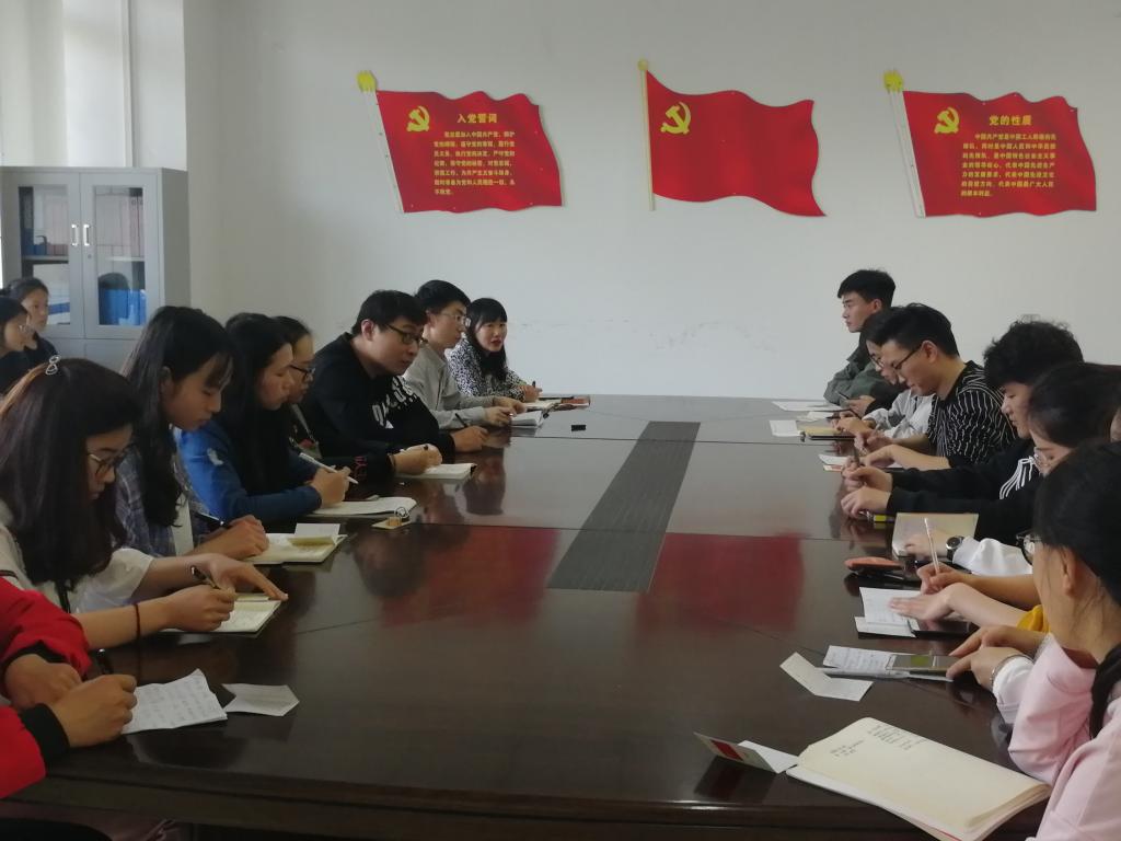 4月23日下午,学生第一党支部在学院会议室开展“履行党员义务主动缴纳党费”主题党日活动,学院党委副书记沈兰及支部全体党员参加,活动由支部书记朱勇同志主持。