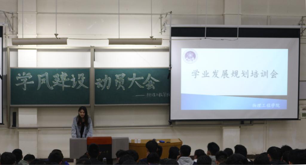 接着,校第五届学业规划大赛二等奖获得者应物162班的龙烨彬同学结合自己参赛的经历,从如何撰写学业规划书、PPT的制作、语言的组织等方面给参会的同学进行了培训。