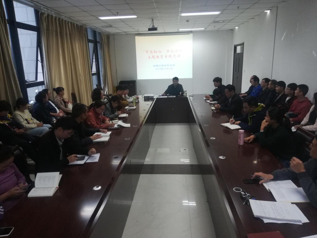 10月9日下午,我院党委在图书馆111会议室开展“不忘初心、牢记使命”主题教育之专题党课学习,学院党委书记刘国礼为全体党员带来主题为《坚持党对一切工作的领导》的党课,全体教师党员和学生党员参与了学习。