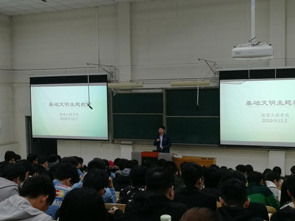 11月11日晚,beat365在公教4区101教室开展基础文明主题教育活动。2017级全体学生参加活动,主题教育活动由院团委副书记朱勇老师主持。