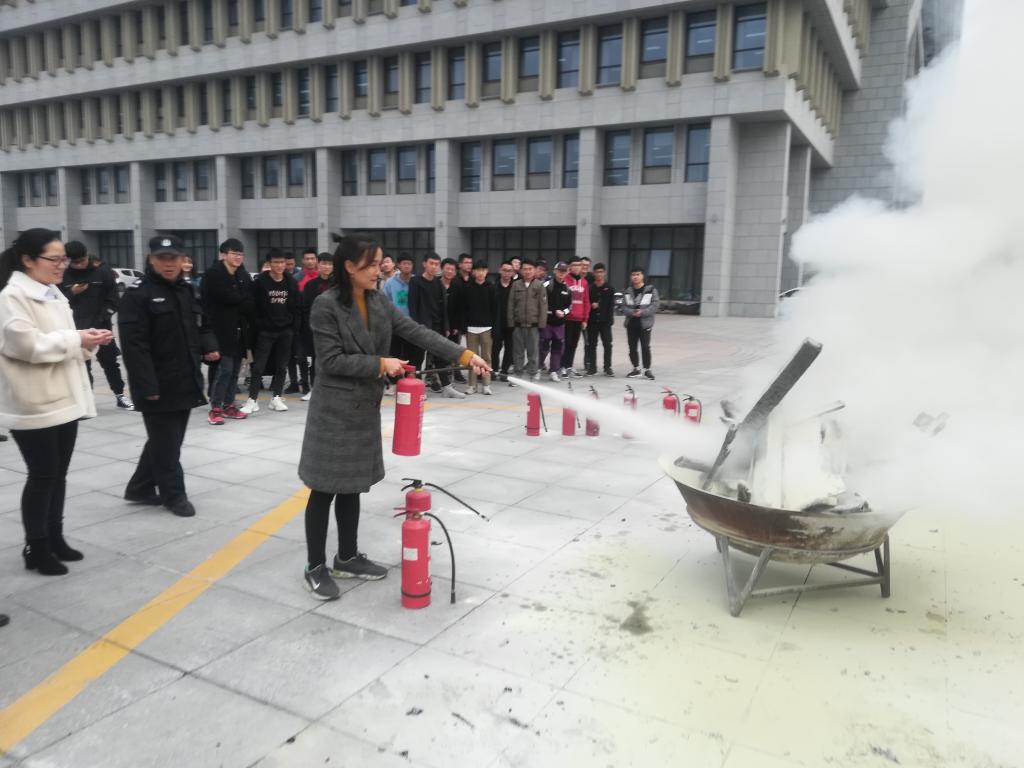 随后,保卫一科科长李文平给我院2018级学生现场讲解了干粉灭火器的正确使用方法与注意事项,学生亲自进行了操作体验与灭火演练。