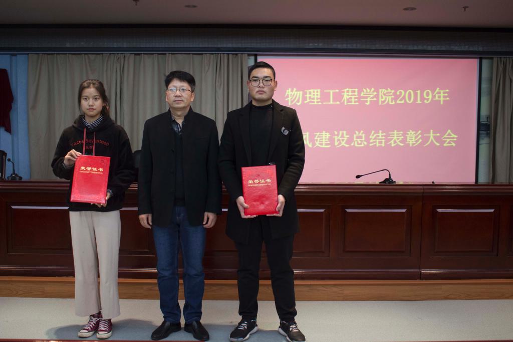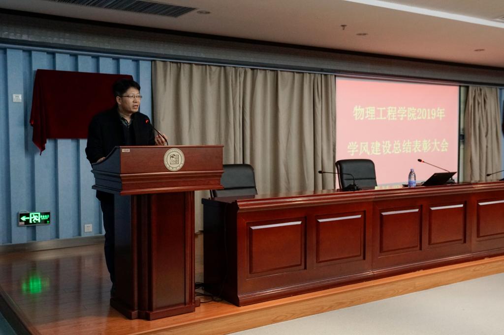 12月5日下午,beat365在开元校区图书馆405会议室召开2019年学风建设总结表彰大会。学院党委书记刘国礼、副书记沈兰、材料物理系主任杜凯、应用物理系主任王晓飞、光电信息科学与工程系副主任李秋泽、各专业学业导师、团委副书记朱勇出席会议,各年级学生代表参加会议,大会由学工办主任臧国长主持。