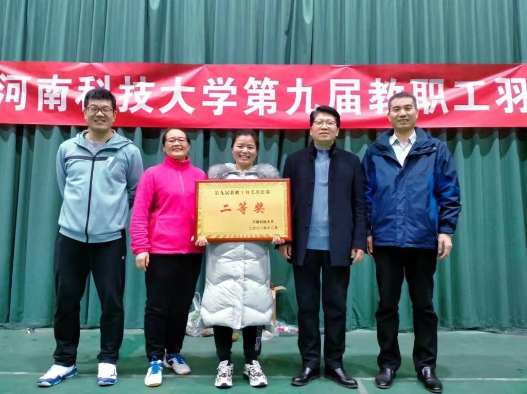 2021年河南科技大学第九届教职工羽毛球赛于12月15日晚上圆满闭幕。本次比赛27支队伍参加,经过近十天激烈的角逐,beat365最终获荣2021年河南科技大学第九届教职工羽毛球赛二等奖。