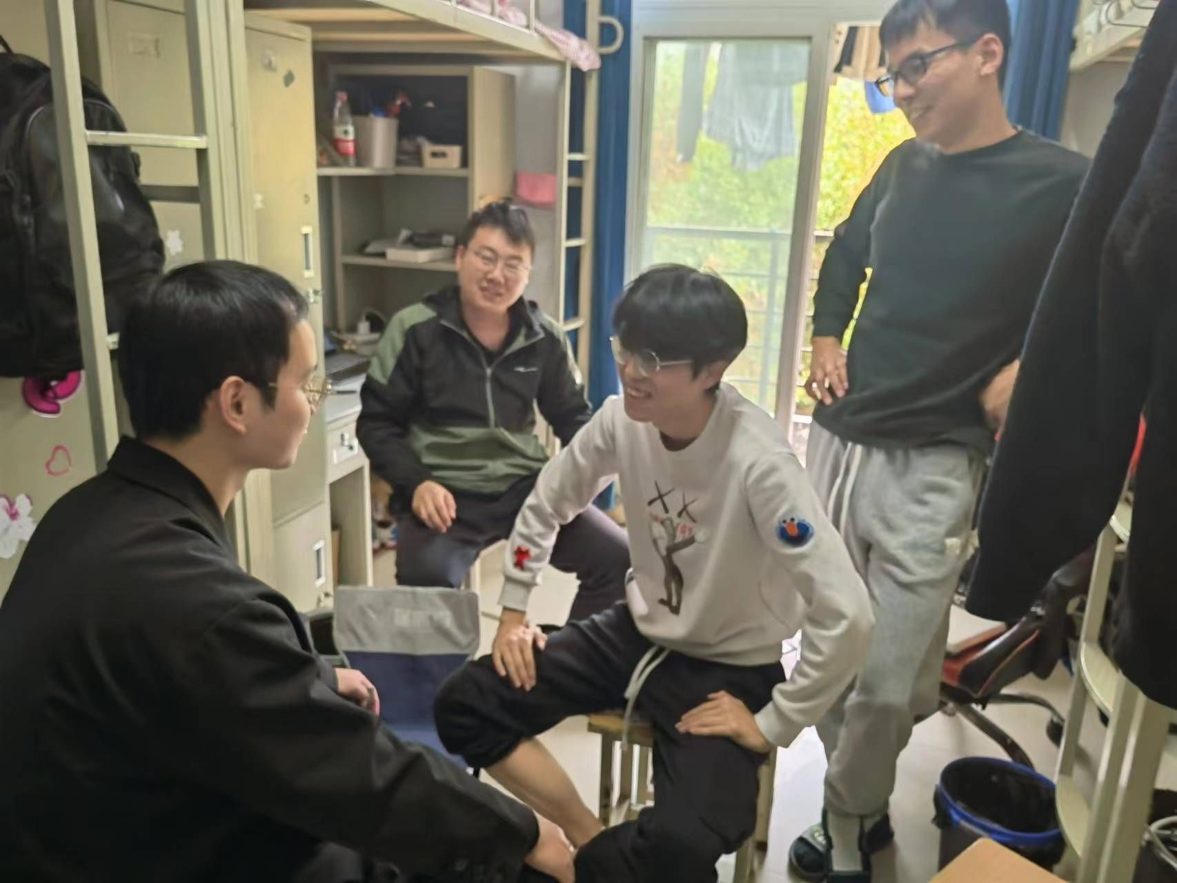 为庆祝党的二十大胜利召开,研究生党员林景润和张献同志走进宿舍,开展绕口令比赛,气氛欢快。研究生们用自己的方式表达了对党的二十大胜利召开的喜悦,展现了当代青年朝气蓬勃的精神状态。(通讯员/陈莹 李贺贺)