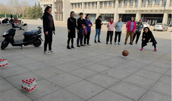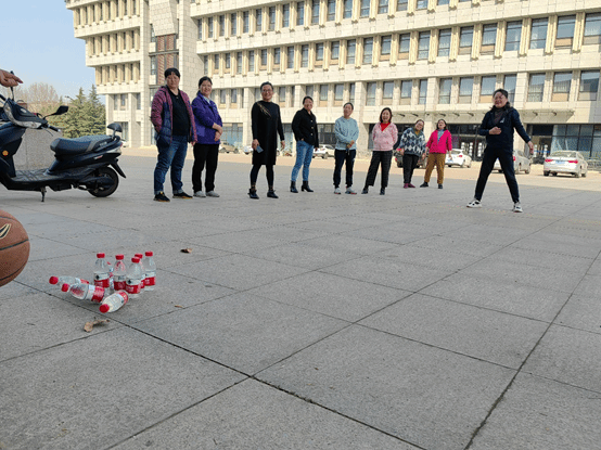 三年的疫情限制了人们的生活,对于久违的室外活动大家都显得格外兴奋,早早来到了活动现场。趣味保龄球比赛以矿泉水瓶代替球瓶,以篮球代替保龄球,参赛人员在规定位置击球,每人三次击球机会,按击倒的瓶子数计算得分,得分多者为胜。大家在了解比赛规则后开始练习击球,并相互交流击球技巧,甚至利用物理学原理对球瓶进行受力分析,讨论如何出球能够提高命中率。物院的老师们无论工作还是生活都是这么认真有趣。比赛正式开始后,女老师们依次上场,瞄准目标,沉着发力,虽然命中率有高有低,但欢声笑语不断,一扫工作生活中的疲惫。