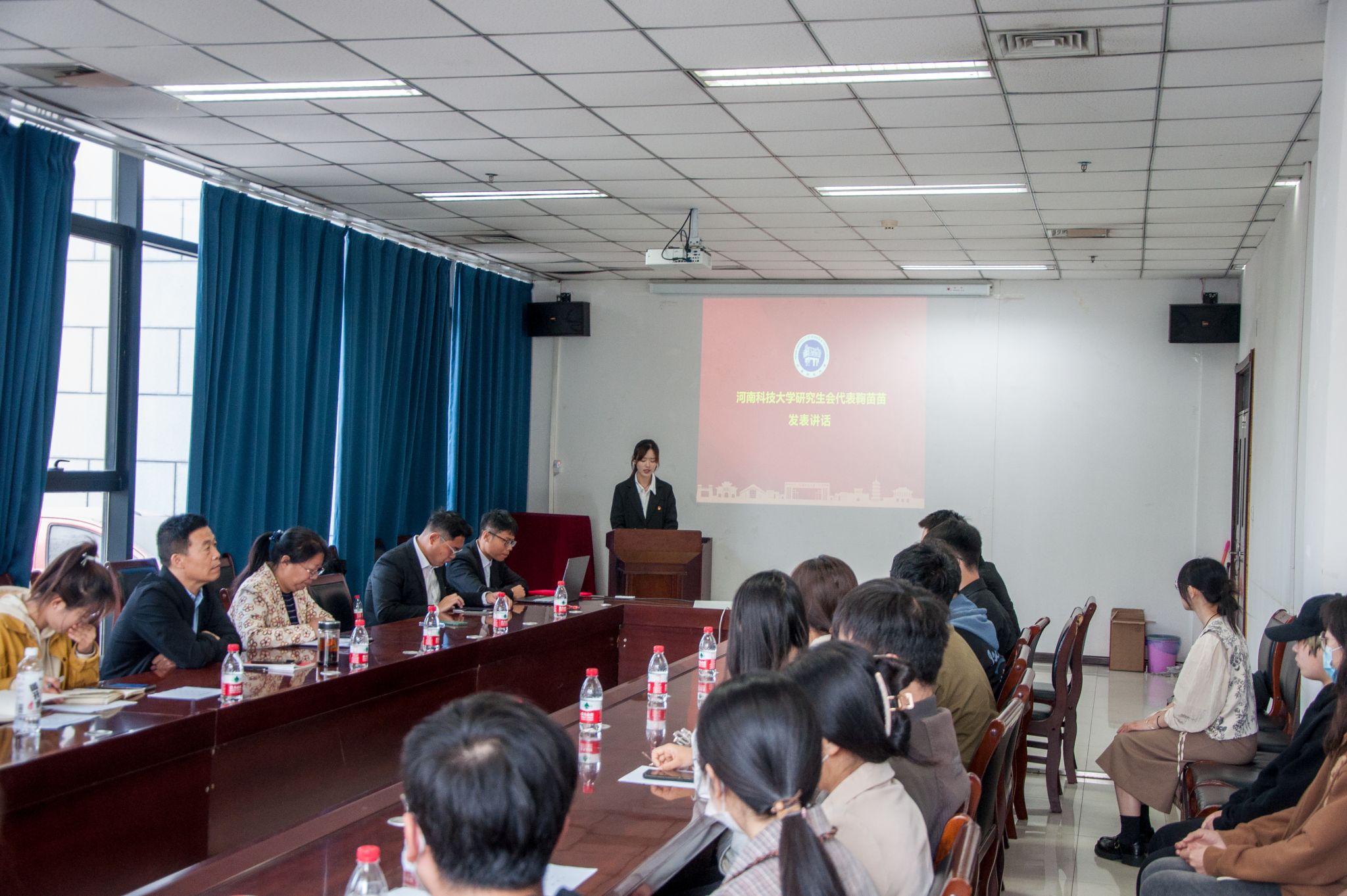 会议伊始,全体起立唱国歌;随后,李小红副院长发表了致辞,强调了研究生作为学校重要的人才培养对象,在未来的学术道路上肩负着重要的使命和责任。校研会代表鞠苗苗同学发表讲话,分享了自己在研究生会中的成长和收获,并为研究生们的未来发展提出了宝贵建议,同时对大会的顺利召开表示热烈祝贺;最后,李江波书记发表了讲话,对成立研究生会的初衷和意义进行了阐述,强调了研究生会应该在学术研究、文化交流、社会服务等方面发挥重要作用,并对学院研究生事业发展提出了殷切期望。