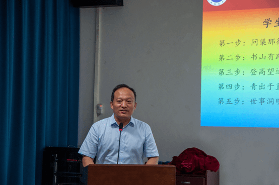 首先,李新忠院长对新入学的2023级新生表示了热烈的欢迎。针对硕士研究生生活该如何进行的问题,李新忠院长向23级新生提出新颖的“五步走”方针,凝练概括了对23级新生的建议和期许。他强调,研一要夯实基本功,为科研之路打造好“工具”;新生要勤恳研读文献,由量变引起质变,同时要加入自己的思考,形成一个个富有创新性的“小点子”。李院长表示新生要“站在巨人的肩膀上”了解前沿的科研现状,在一遍遍修改和讨论改进的过程中会收获宝贵的经验。最后,李院长鼓励各位新生在做好科研工作的同时,要学习为人处世的智慧,从各个方面提升自身魅力。