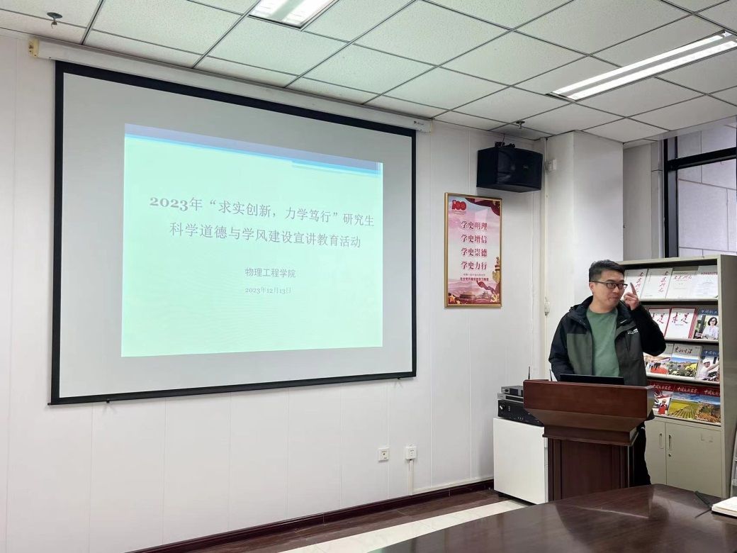 为学习贯彻习近平新时代中国特色社会主义思想和习近平总书记关于科学道德和学风建设重要指示精神,强化科研诚信与作风学风建设,提高科学道德,促进学术创新和发展,12月12日,beat365面向全体研究生开展了“求实创新,力学笃行”科学道德与学风建设宣讲教育活动,由研究生辅导员李贺贺老师主讲。