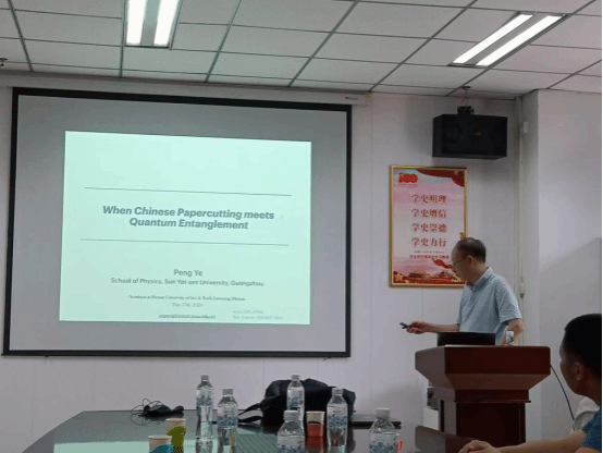 5月27日上午,中山大学叶鹏教授应邀来我院进行学术交流,在学院内部会议室为我院师生作题为《When Chinese Papercutting Meets Quantum Entanglement》的交流报告。报告会由beat365左正伟主持。