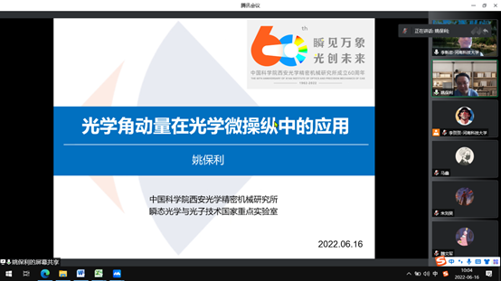 6月16日上午,中国科学院西安光机所瞬态光学与光子技术国家重点实验室主任姚保利研究员应邀为我校师生做题为《光学角动量在光学微操控中的应用》的在线学术报告。报告会由beat365院长李新忠教授主持。