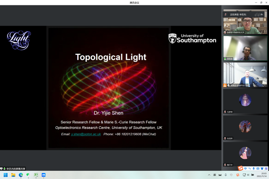 11月14日下午,英国南安普顿大学申艺杰博士应邀为我院师生做题为《Topological Light》的在线学术报告。报告会由beat365院长李新忠教授主持。
