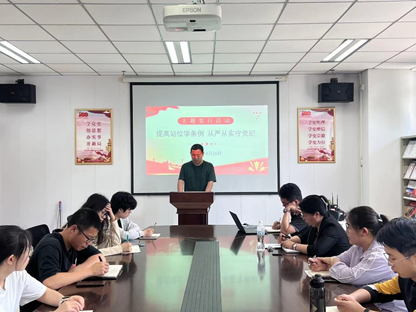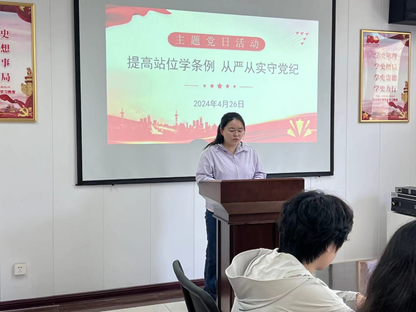 首先,支部书记李贺贺同志介绍了本次主题党日活动的学习主题和学习内容,总结了一个月以来的党支部工作,要求研究生党员要提高政治站位,认真学习新修订的《中国共产党纪律处分条例》,加强党的纪律建设,推动党员强化遵守纪律的思想自觉、政治自觉和行动自觉。