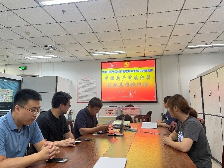 2024年6月12日上午,材料物理系党支部书记雍永亮以“中国共产党的纪律与优良传统作风”为主题,为材物系开展了专题党课,材物系全体党员参加会议。