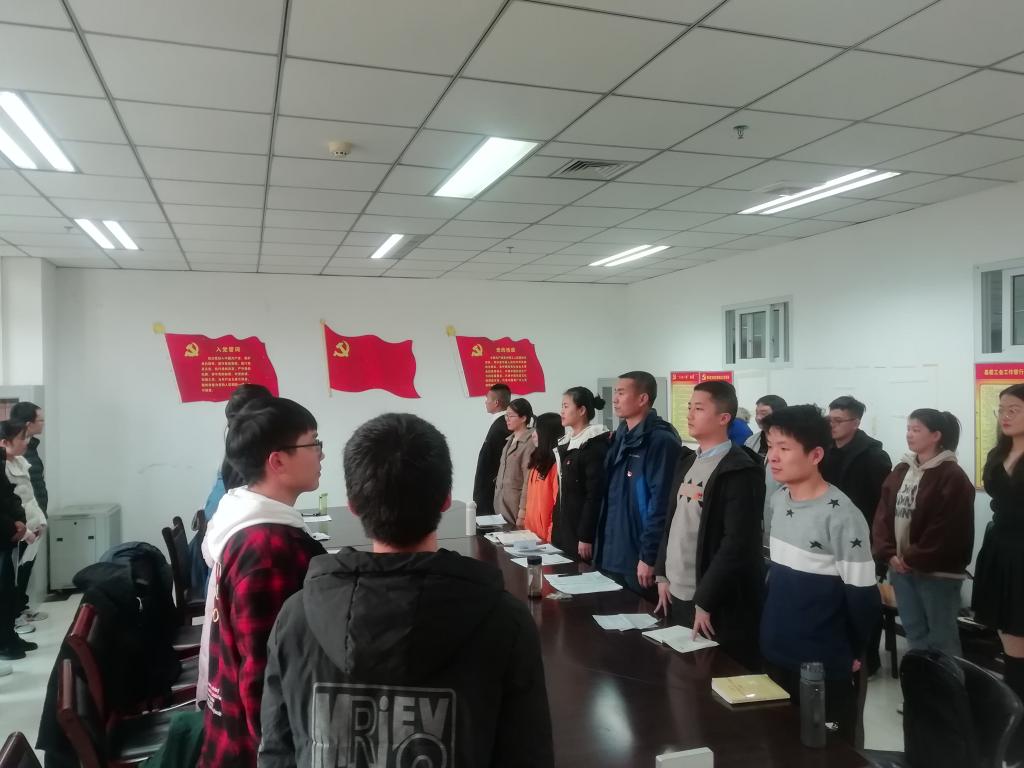 接着,会议讨论接收李金宇等9名发展对象为预备党员事宜。李金宇等9名发展对象逐一宣读入党志愿书,汇报自己对于入党的认识和学习工作情况;然后,由入党介绍人对发展对象的基本情况进行介绍;支部书记宣读政审报告。随后,与会党员就以上拟发展对象发表意见,指出优点,提出不足和希望;接着,全体正式党员针对每一个拟发展对象进行逐一无记名投票表决,9位同志均全票通过,被接收为中共预备党员,新发展的预备党员面向党旗进行庄严宣誓。