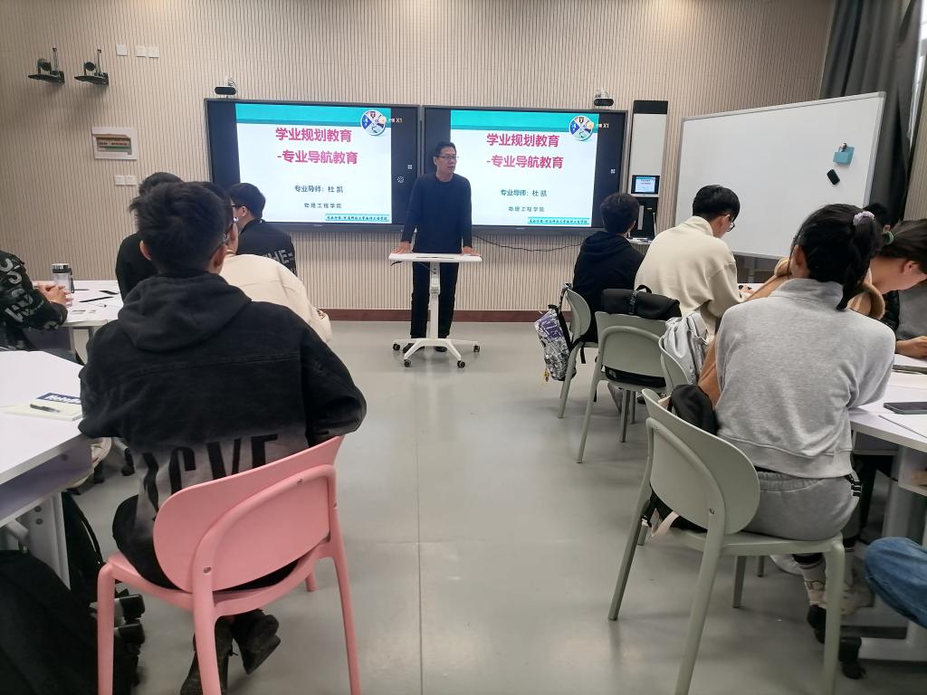 2021年10月11日上午10点,beat365新能源材料与器件系在公教1-102开展“学业规划-专业导航教育”活动。会议由新能源材料与器件系主任杜凯主持,专业年级导师赵豫洁以及2021级新能系全体新生参与。