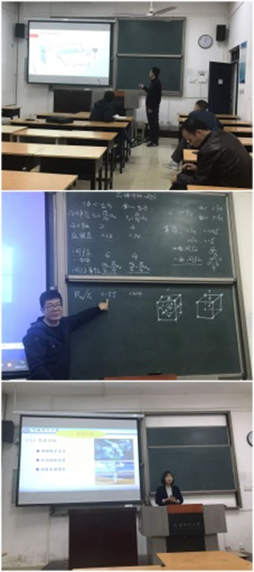 材物系雍永亮、张少峰、康大伟、王照武、周清晓五位老师分别以《多普勒效应》、《晶体中的间隙》、《电子的自旋》、《热力学第三定律》、《光的偏振》为题,进行了精彩的课堂教学比赛。参赛的五位老师声情并茂、挥洒自如,以精彩的课堂设计、沉稳从容的讲授、条理清晰的说课赢得了现场的一片掌声。最后雍永亮主任对参赛教师的表现进行了综合点评,不仅高度赞扬了老师们的专业基本功,并就教案书写、讲课语速、互动交流等方面给与了中肯建议。