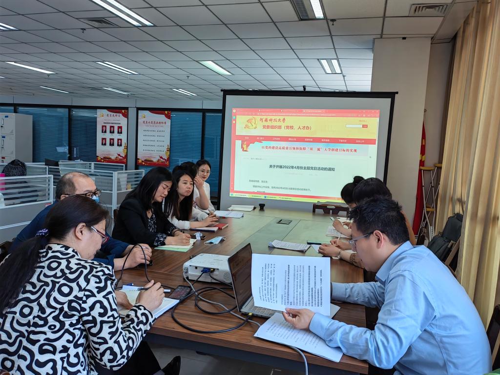 2022年4月26日上午,新能源材料与器件系开展4月份主题党日活动暨政治理论专题学习,活动主题为“担当作为 苦干实干 推进能力大提升作风大转变”。会议由支部书记杜凯老师主持,新能源系全体教师参加会议,李小红副院长出席会议。