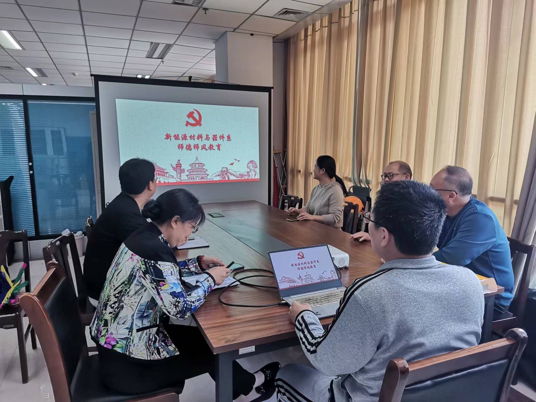 2023年5月8日上午,新能源材料与器件系开展师德师风警示教育活动,会议由系主任杜凯主持。