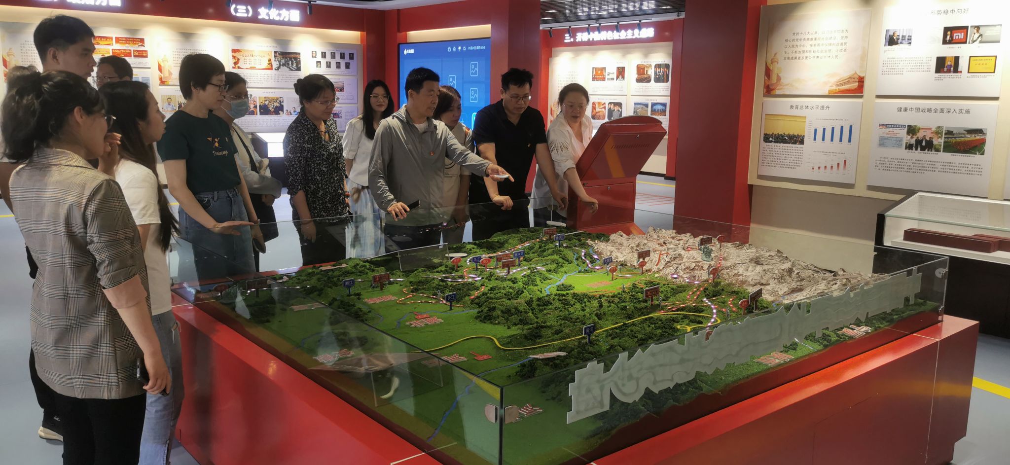 中国道路体验中心纪念馆是由我校马克思主义学院负责建设,集教学、展览、体验、展演、制作于一体的多功能思想政治理论课实践教学平台。在马克思主义学院老师的讲解和带领下,党员同志和教师们认真参观展柜里的红色历史文献资料及文物、中国长征路线沙盘和中国文化精神长廊、探索中国革命与建设道路、开辟中国特色社会主义道路、中国特色社会主义进入新时代等内容,回顾中国共产党探索、坚持和发展中国特色社会主义道路的伟大辉煌历程,重温源远流长的中华优秀传统文化、伟大的革命文化和社会主义先进文化。
