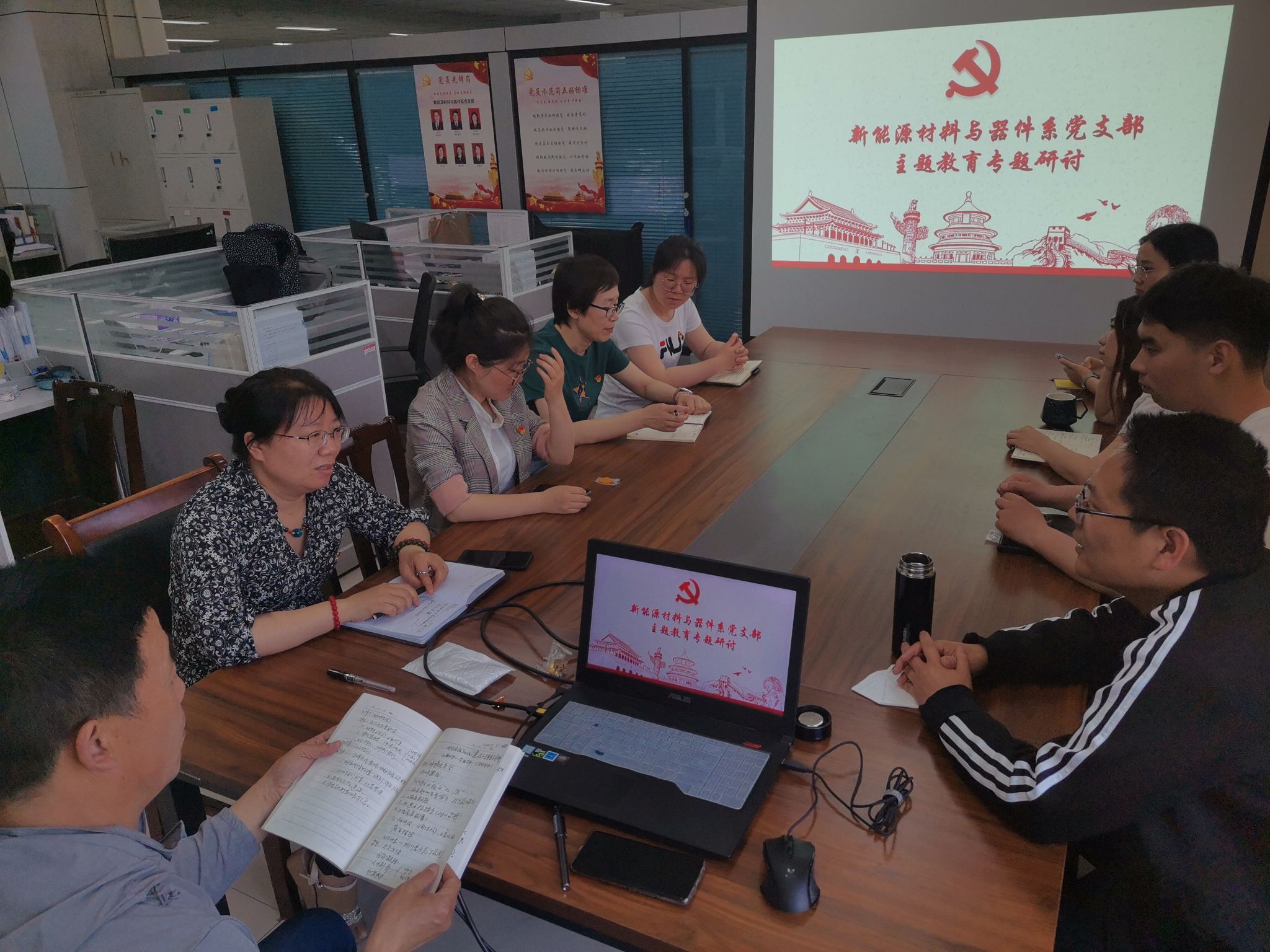 2023年5月15日下午,新能源材料与器件系开展“带头示范强引领,集体研讨促提升”专题研讨会。会议由支部书记杜凯老师主持,学院党委书记李江波和李小红副院长出席会议,新能源系全体党员同志参加会议。