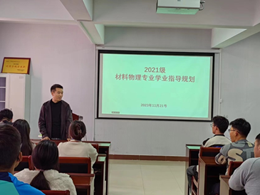 2023年11月21日下午四点,在嘉园十号楼五楼会议室,材料物理系开展21级学业指导规划主题班会。活动由材料物理系主任雍永亮主持,副主任张少峰、学业导师黄少博及2021级全体学生参加。